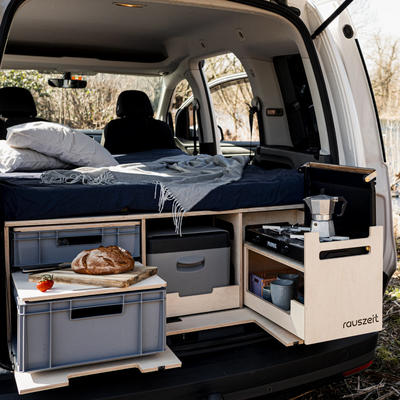 Es handelt sich vielmehr um modulare Boxen in unterschiedlichen Ausführungen, welche ganz einfach in den Kofferraum oder die Ladefläche des Fahrzeugs gestellt und befestigt werden. Sie bieten die Möglichkeit, nahezu jedes Auto in ein Mini-Wohnmobil zu verwandeln, da sie alles mitbringen, was man im Campingurlaub benötigt.